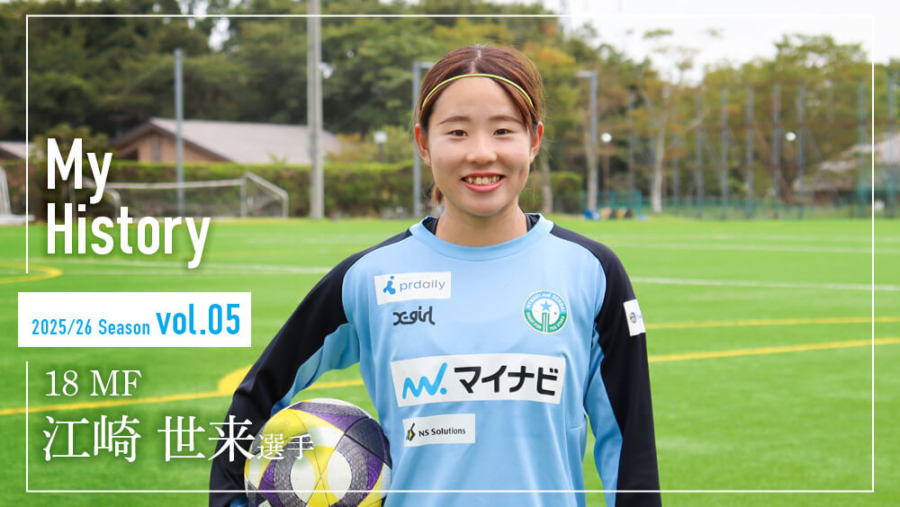 マイナビ仙台レディースの選手に、これまでの歩みを振り返ってもらう「マイヒストリー」。それぞれのサッカー人生に物語があり、かけがえのない記憶があります。第5回は18MF江崎世来選手です。豊富な運動量でピッチを所狭しと動き回る「マイナビのダイナモ」に今の思いやこれまでの歩みを聞きました。(取材はI神戸戦前の10月9日に実施)